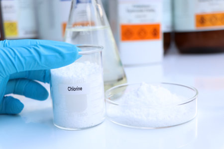 Chlorine in chemical container , chemical in the laboratory and industry, Raw materials used in production or analysis