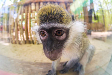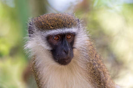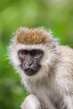 Portrait of green monkey looking at camera - close up view. Exotic animal, primate and wildlife concept
