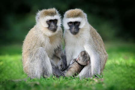 Vervet monkey with a baby, Entebbe Botanical Garden, Uganda