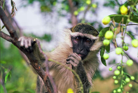 Green Vervet Monkeys in Bigilo forest park, The Gambia