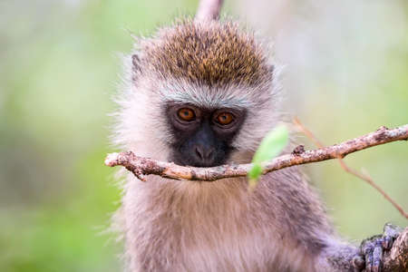 Close up portrait of Vervet Monkey Chlorocebus on the tree in the Masai Mara national Reserve in Kenya, Africa.