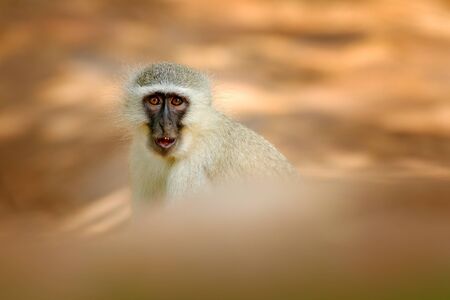 portrait of monkey sitting and posing. Safari.