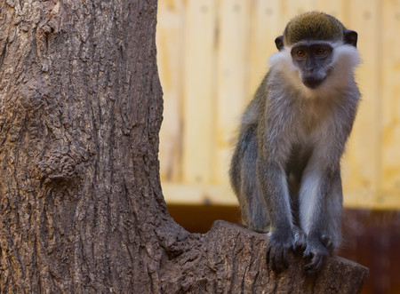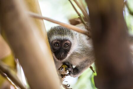 green monkey sitting on a tree looking into the camera, Ethiopia