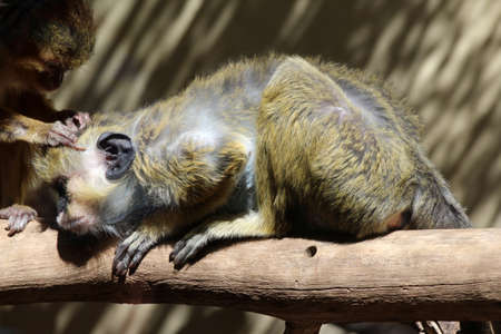 green monkey, chlorocebus sabaeus, in captivity in Spanish zoo, resting and looking around. Spain