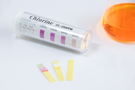chlorine solution in glass, Chlorine is used to kill bacteria or to perform experiment in laboratory