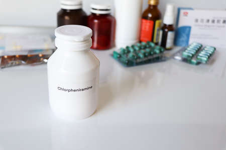 Chlorpheniramine in bottle ,medicines are used to treat sick people.