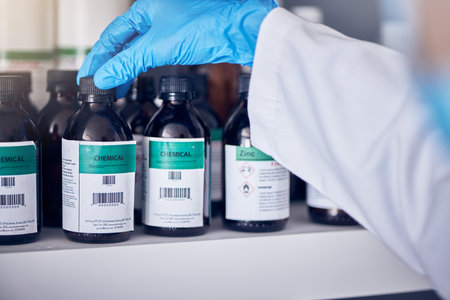 Chemistry reagent on a shelf in a pharmacy labor