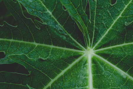 Macro Photography of Exotic Plant Leaf Textures Featuring Intricate Veins and Vibrant Green Details