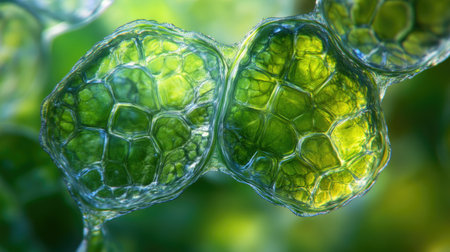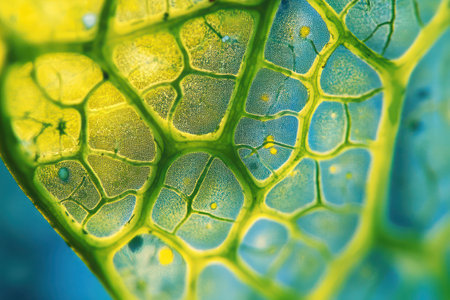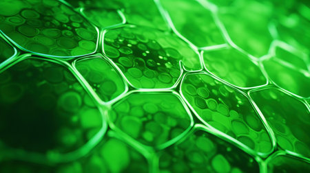 Closeup of green plant cells, detailed and vibrant