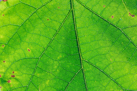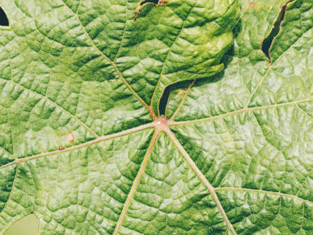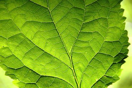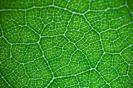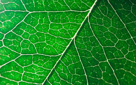 Green leaf with veins close-up macro photography. Abstract background.