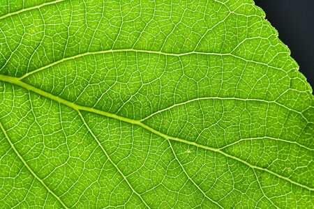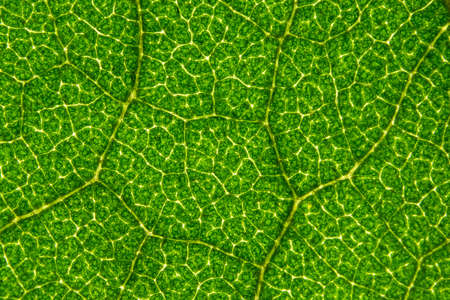 Tree leaf veins close up, natural background. Colorful green bright leaf macro view, backdrop.