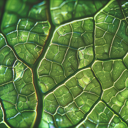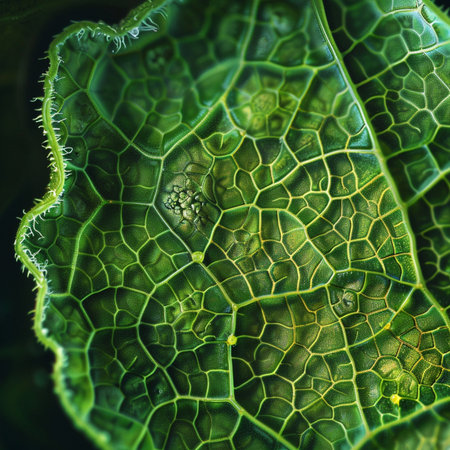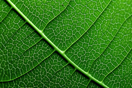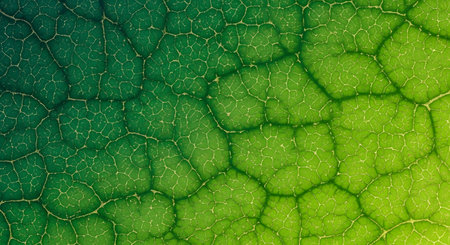 Leaf pattern detail, Detailed closeup of plant cellular network, Magnified view of leaf vascular system demonstrating cellular complexity and vibrant green pigmentation
