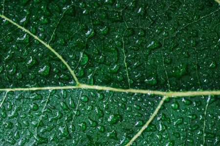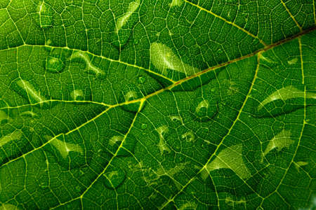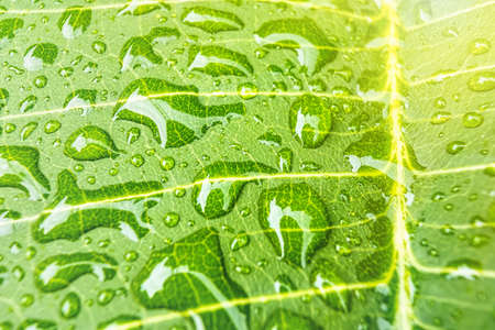 Green Leaf Texture background, Rain drops of transparent water on leaf. Beautiful Fresh natural background for eco friendly concept