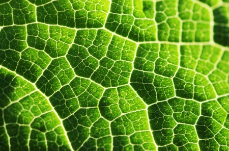 green leaf shot in macro. The leaf shows veins.