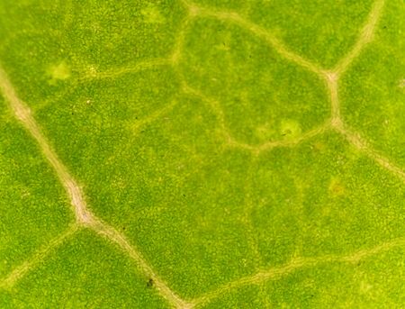 microscopic view of the leaf surface showing plant cells.