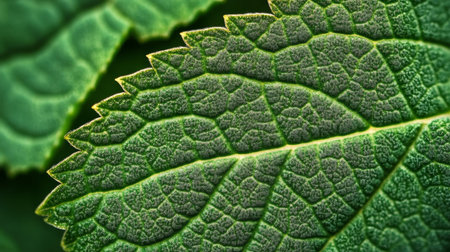Intricate close-up of a green leaf highlights its textured surface and delicate veins, perfect for nature and botany-themed projects related to the beauty of the natural world.