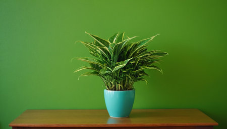 Beautiful green plant in a pot on a wooden table. Selective focus.
