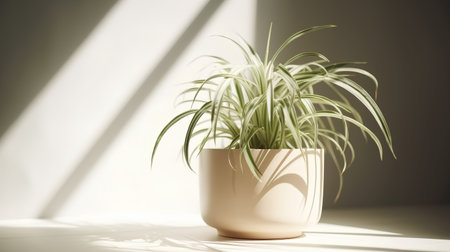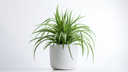 Photo of Spider_Plant in minimalist pot as houseplant for home decoration isolated on white background