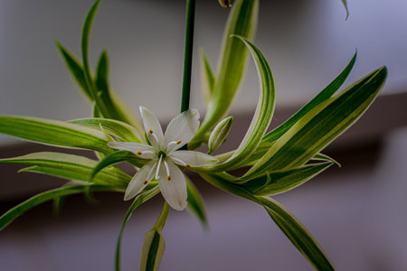 Generative AI : Chlorophytum comosum small Spider plant macro closeup