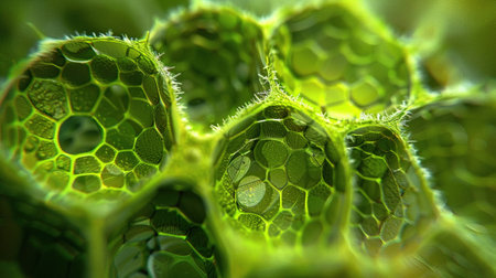 Closeup of green plant cells, detailed and vibrant