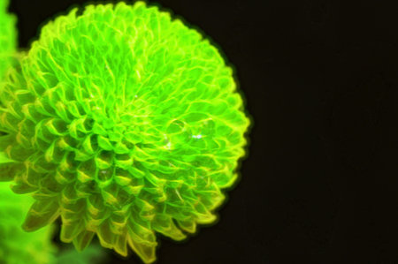 An abstract image showcases a symmetrical, glowing green floral design set against a black backdrop. The composition features intricate, interconnected patterns with a translucent, textured appearance. The piece evokes a sense of vibrant energy, suitable for various design applications, including artistic projects and digital media content.