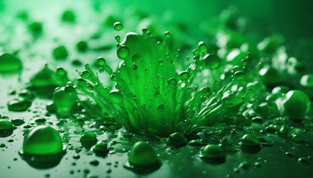Vibrant Green Spherical Algae with Water Droplets Macro Photography for Scientific and Beauty Purposes AI Generative