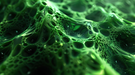 Intricate close-up of vibrant green cells in a microscopic world from nature. Generative AI