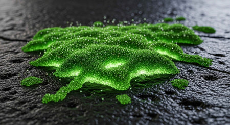 Microscopic view of vibrant green algae, close-up, biofuel concept, scientific detail.