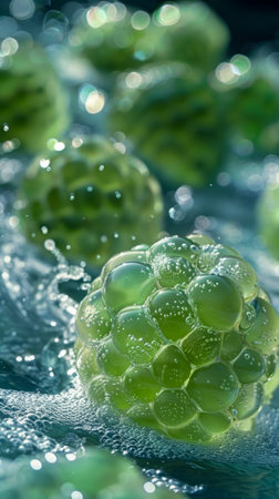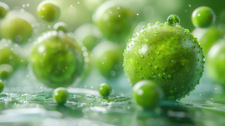 Vibrant Green Spherical Algae with Water Droplets Macro Photography for Scientific and Beauty Purposes AI Generative
