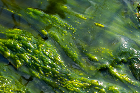 natural background of a abstract organic slimy substance with algae and small bubbles