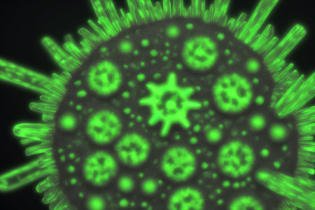 Vivid Green Virus Particles Captured in Close-Up
