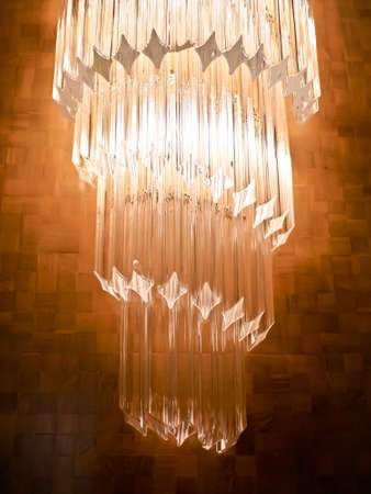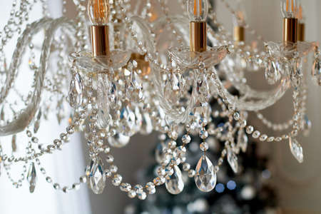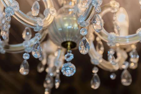 Crystal chandelier close-up. Selective focus with copy space.