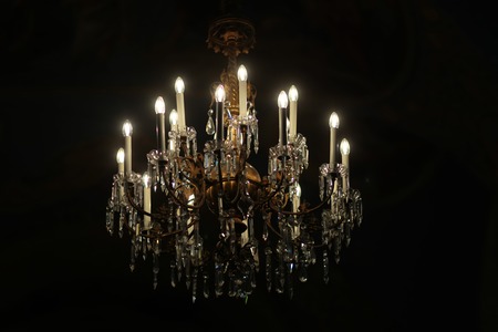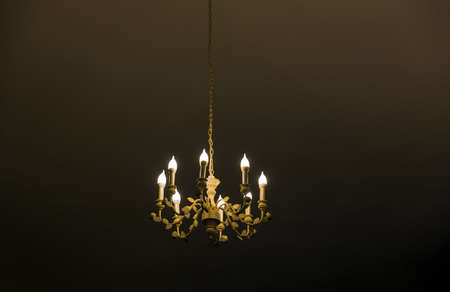 antique candle light from chadelier in dark room for luxury background