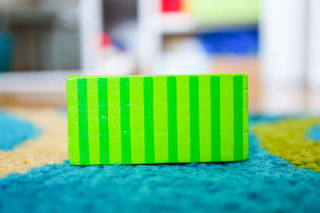 A rectangular toy for children put on a multicolored surface