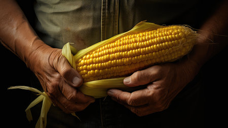 Harvesting fresh corn on a warm afternoon with sunlight illuminating the golden kernels