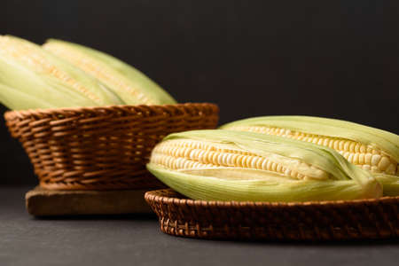 This photo of young sweet corn in yellow on a black background was taken from a close-up, wadaslintang, Indonesia