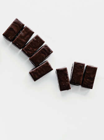 Dark chocolate candies isolated on white background, sweet food and tasty dessert