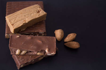 Almond nougat, typical Christmas dessert on black background