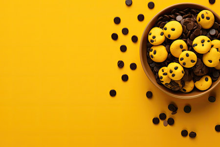 Colorful choco chip pastries on a cheerful yellow background, an intimate snack choice