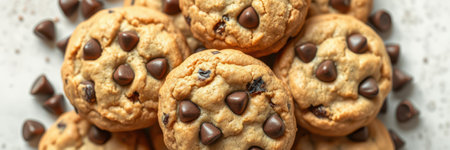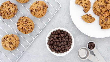 Above view of chocolate chip cookieswith crumble. Concept of sweet food, snack and unhealthy eating