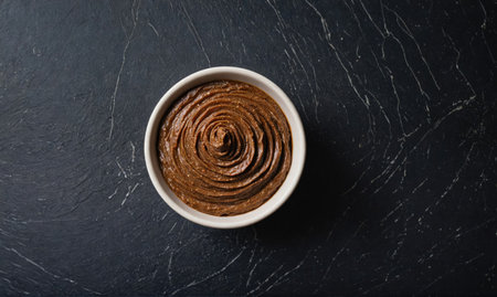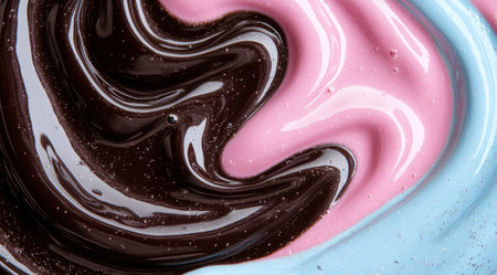 A mesmerizing swirl of creamy chocolate and caramel creates a stunning visual effect. This richly textured mixture is perfect for culinary inspiration and food photography.
