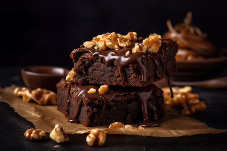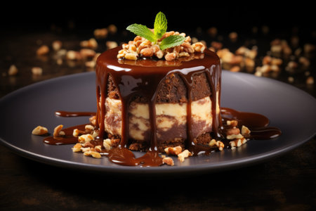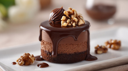 AI Generated. Chocolate Walnut Dessert with a Lustrous Glaze