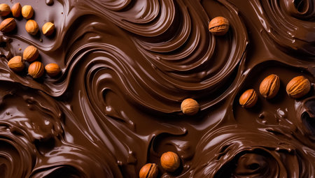 Explore the allure of silky melted chocolate, featuring rich textures and chunks, ideal for dessert-themed projects and culinary delights. Perfect for food photography.