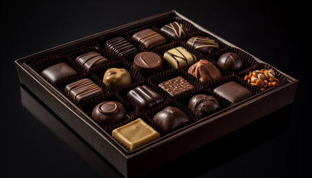 Indulgent gourmet chocolate truffle box, a sweet gift generated by artificial intelligence