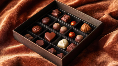 This elegant chocolate box showcases a variety of delicious sweets, perfect for gifts or indulgence. The luxurious arrangement adds charm to any occasion or setting.