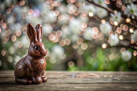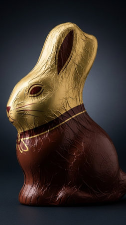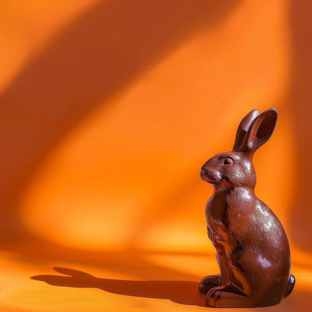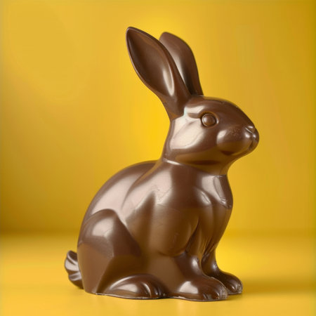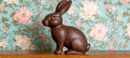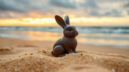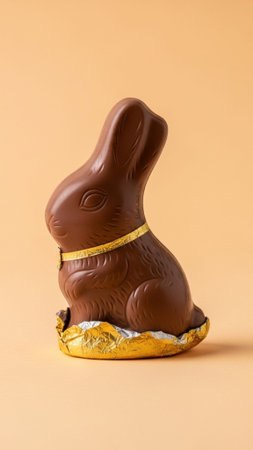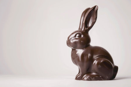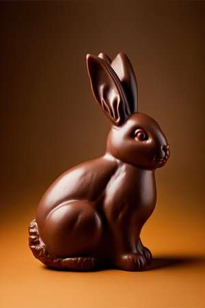 Chocolate Easter bunny figurine rests on a neutral background, highlighting its glossy finish and modern design, ideal for seasonal decorations and festive displays