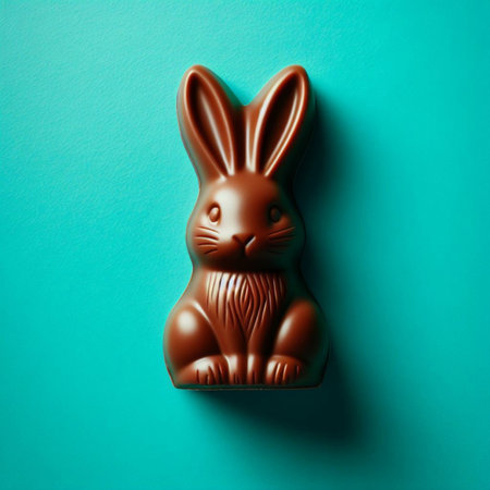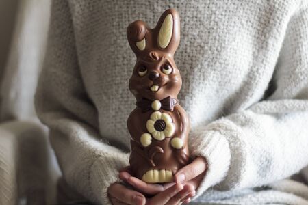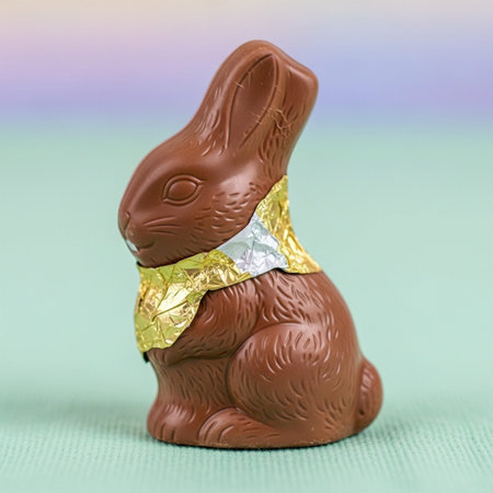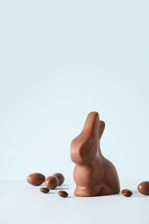 Chocolate Bunny on Bright Background, Sweet Easter Treat, Holiday Concept