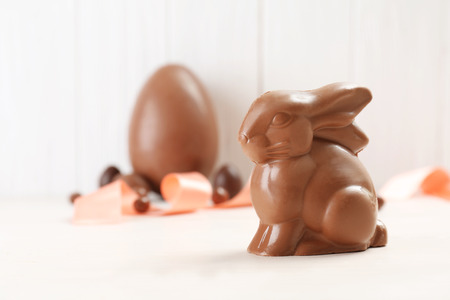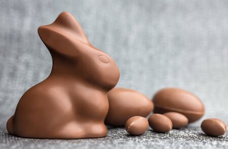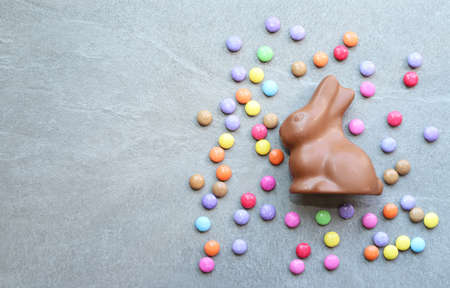 Delicious Easter holiday chocolate bunny, eggs and sweets