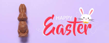 Blank pale purple greeting card with chocolate Easter Bunny for your holiday message