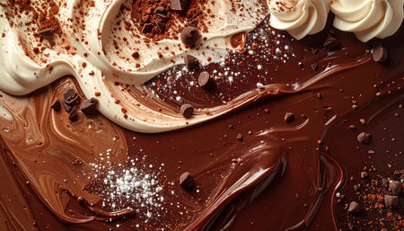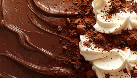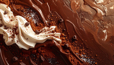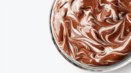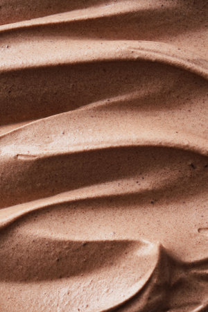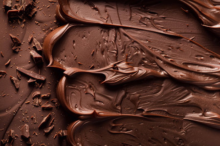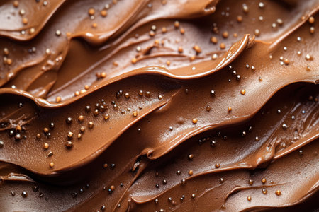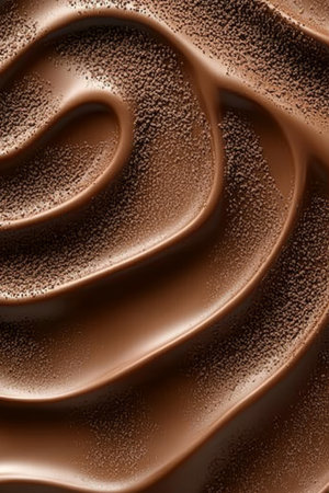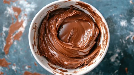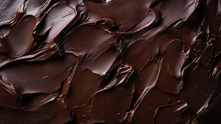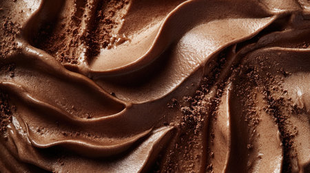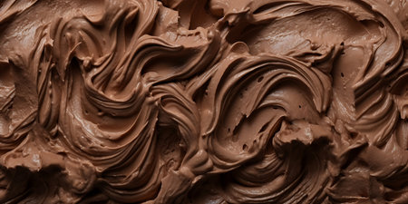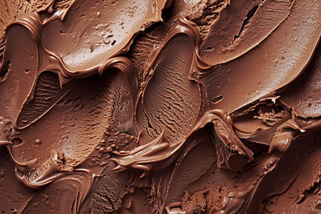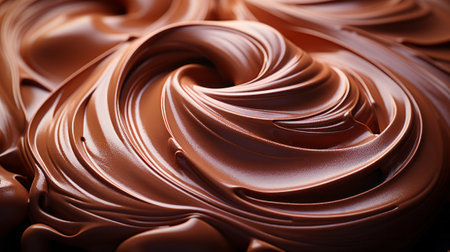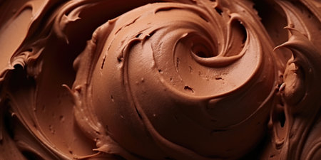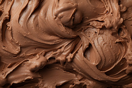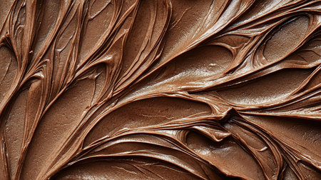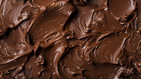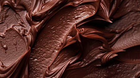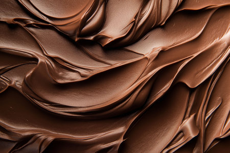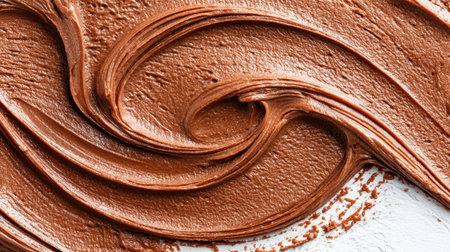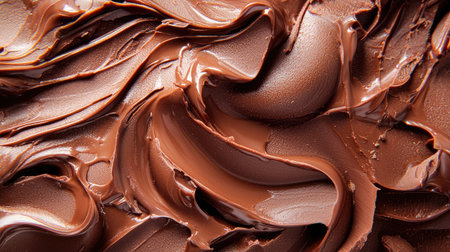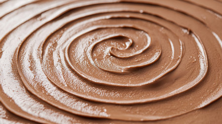 A close-up view of rich and smooth chocolate cream spread offers a stunning visual with textured swirls that enhance culinary creativity for dessert preparation.